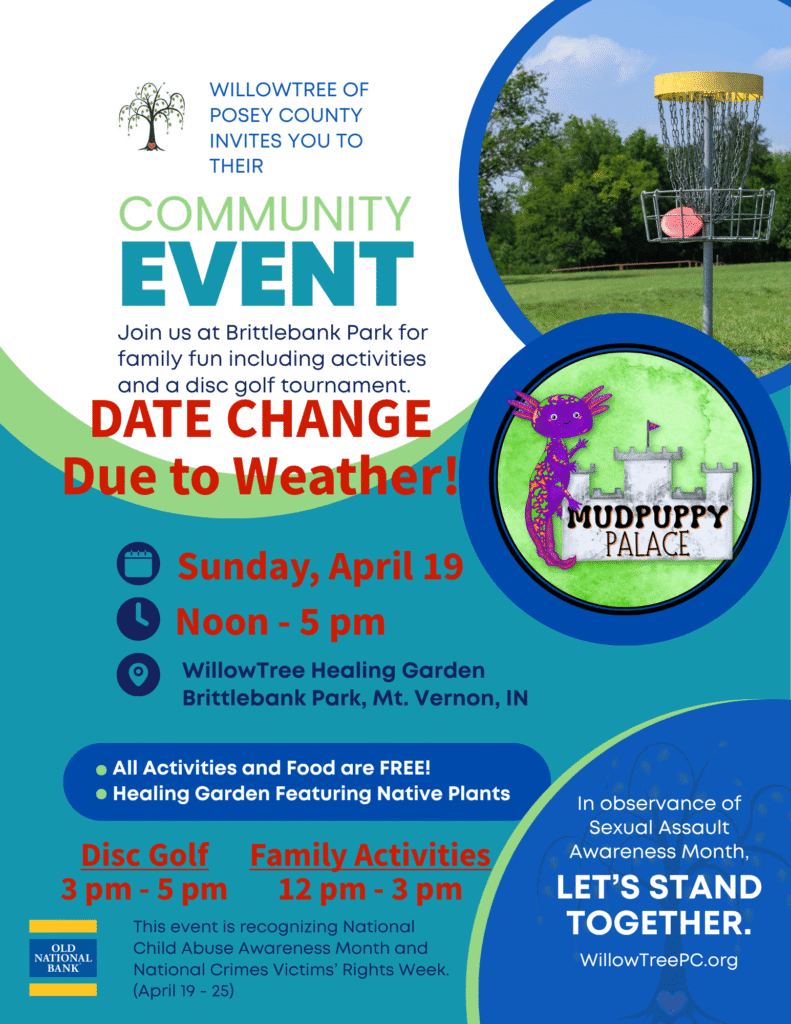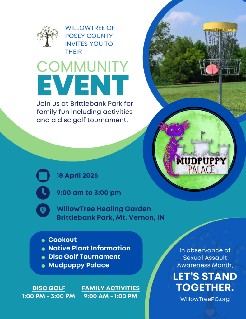 Join us to gather at the WillowTree of Posey County Healing Garden to recognize Sexual Assault Awareness Month and kick off Crime Victims’ Rights Awareness Month. This event will bring community members together to support survivors, raise awareness about the impact of sexual violence and crime, and promote healing and connection.